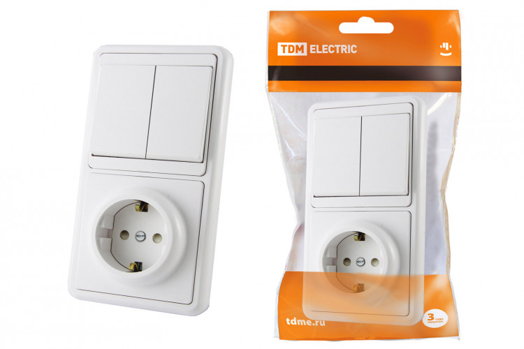 Блок комбинированный БКВР 2-х кл. выкл + розетка 2П+З с з/ш | SQ1813-0002 | TDM