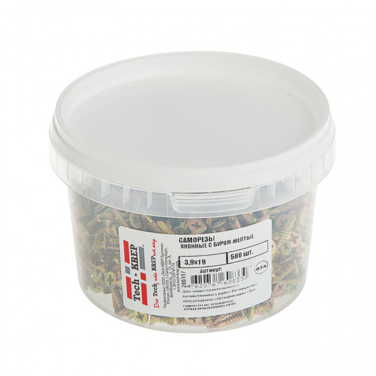 Саморезы оконные с буром 3,9х19 (500шт) желтые - ведро малое | 116807 | Tech-KREP