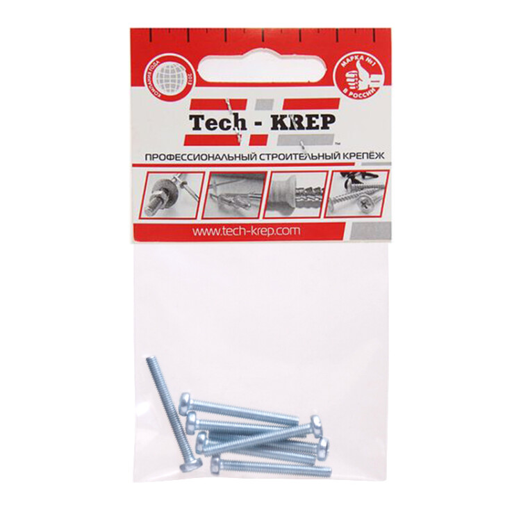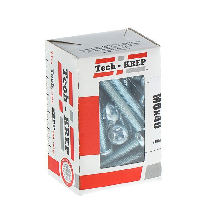 Винт DIN7985 с полукруглой головкой оцинкованный М6х40 (35шт) - коробка с окном | 105228 | Tech-KREP
