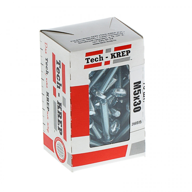Винт DIN7985 с полукруглой головкой оцинкованный М5х30 (70шт) - коробка с окном | 105224 | Tech-KREP