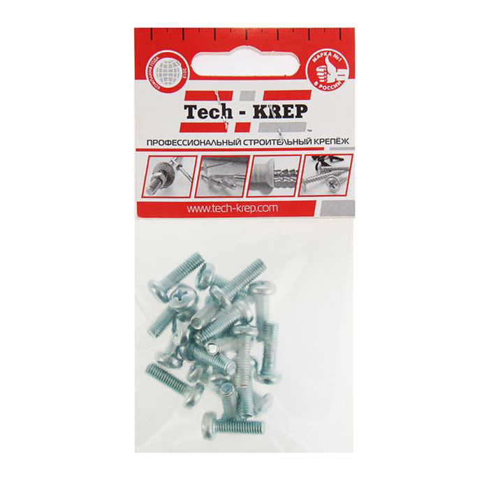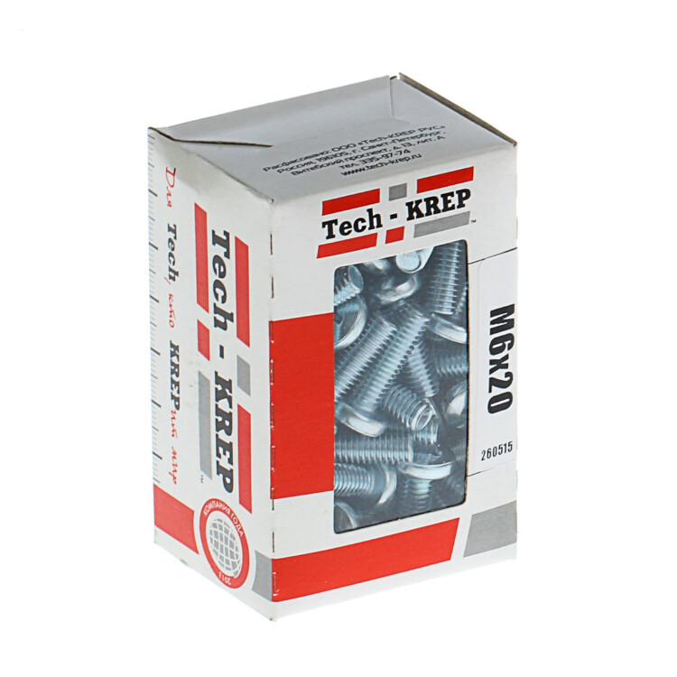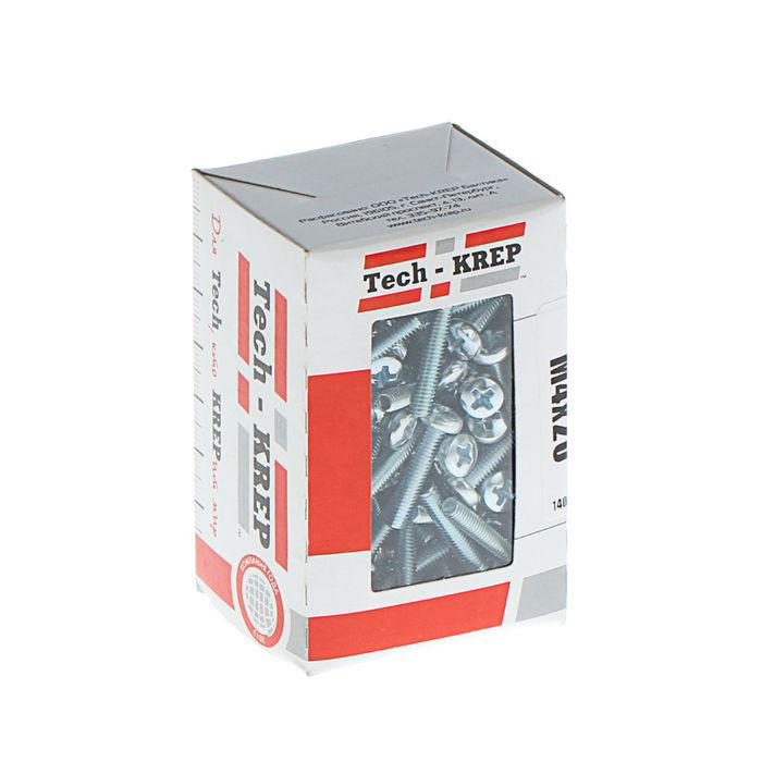 Винт DIN7985 с полукруглой головкой оцинкованный М6х20 (70шт) - коробка с окном | 105226 | Tech-KREP