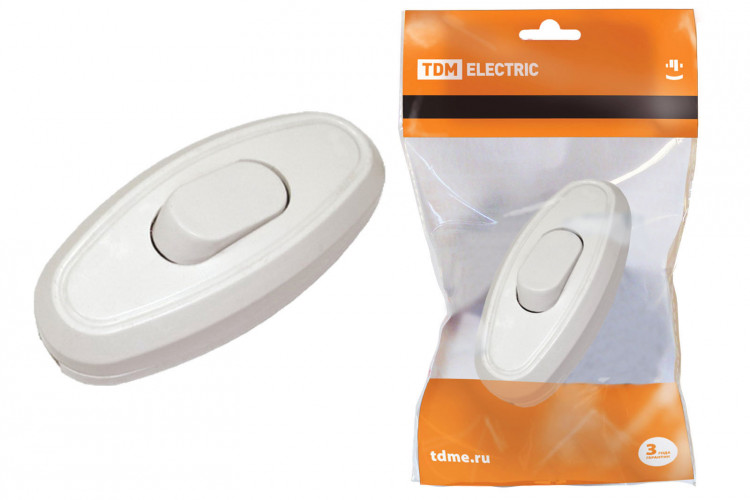 Выключатель на шнур 6А 250В белый | SQ1806-0021 | TDM