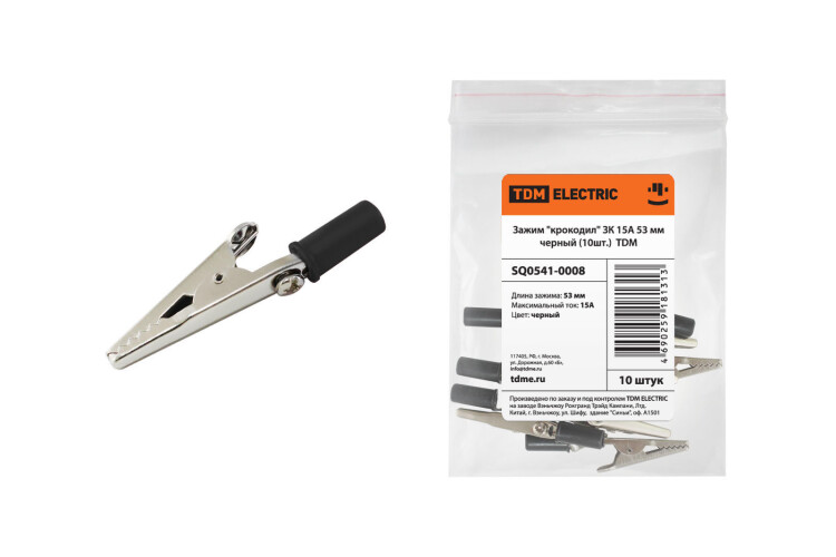 Зажим "крокодил" ЗК 15А 53мм черный (10шт) | SQ0541-0008 | TDM
